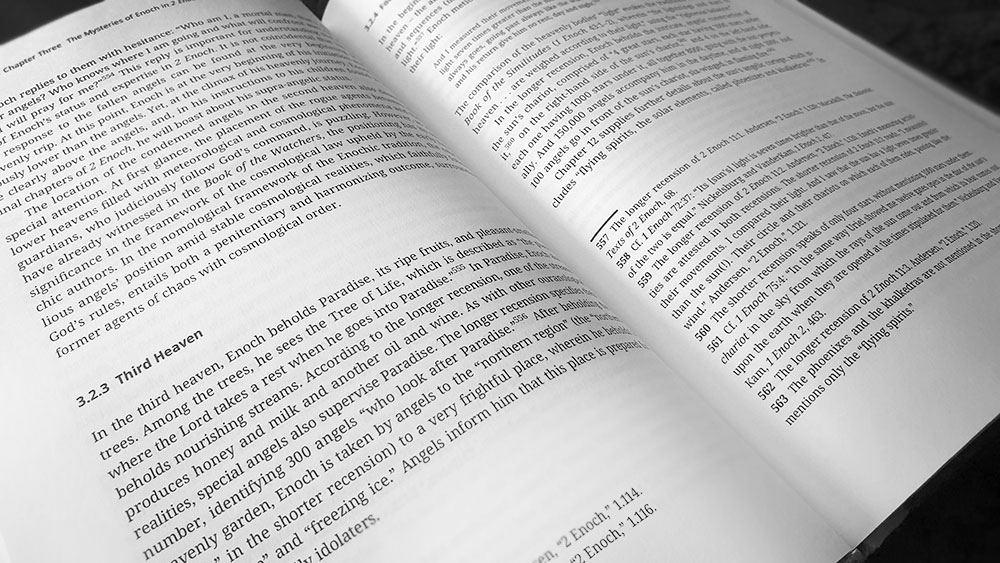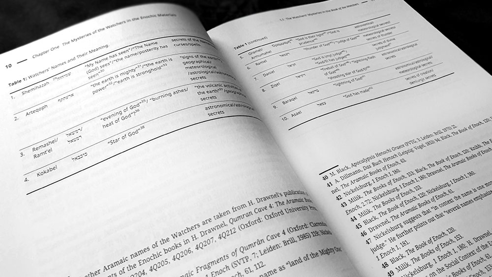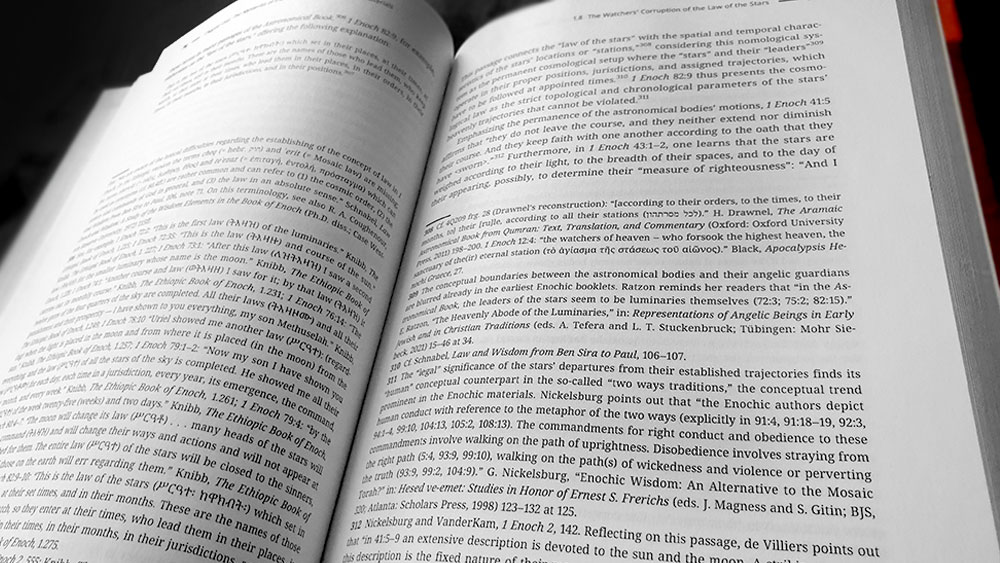 Orlov spends considerable time affirming his thesis, patiently drawing each specific example from Enochic literature, and in particular emphasising the way in which Enoch’s encounters with celestial knowledge directly calls back to their former possession by the Watchers. When 1 Enoch 8 mentions the knowledge of precious stones, antimony, metals, and the roots of plants as some of the corrupting revelations giving to humans by Asael, Shemihazah and the other fallen angels, the same text later details Enoch visiting the mountains of precious stones (1 Enoch 18:6–9), the mountain of antimony (1 Enoch 18:8) and the mountains of vegetation (1 Enoch 32); whilst also receiving, in the Book of the Similitudes, a revelation about the mountains of metals. Finally, in 1 Enoch 33:2, the patriarch observes and counts the stars of heavens and the gates from which they emerged, documenting their positions, times, and months, which is then written down, including “their laws and their functions.” As Orlov argues, if the Enochic tradition sees these movements of stars and the luminaries as commandments or halakhot, then Enoch’s recording of this information is effectively copying the heavenly Torah and its halakhot, adopting a divine role that mirrors God himself, given that the Psalmists writes how “He counts the number of the stars; He calls them all by name.” (Psalm 147:4-5).